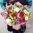 Букет гвоздик, альстромерий и зелени