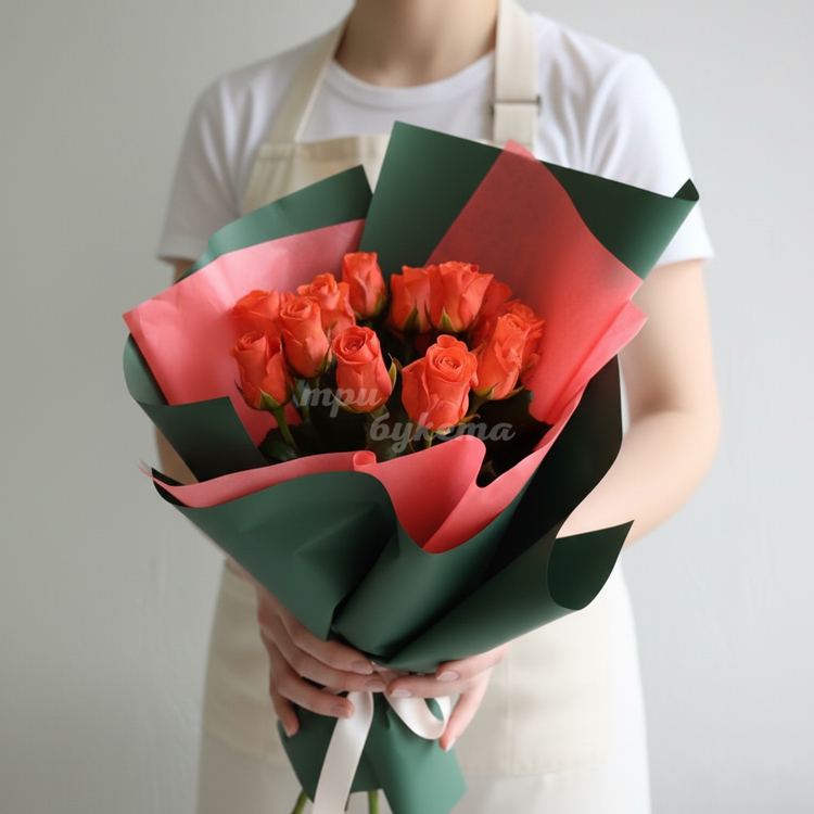 • Оранжевые розы, 15 шт.