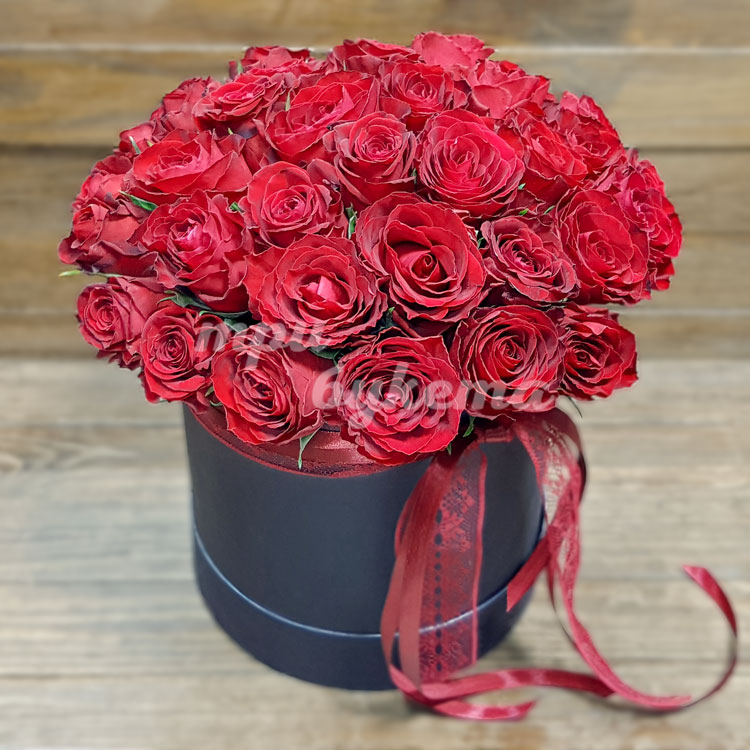 41 красная роза в шляпной коробке