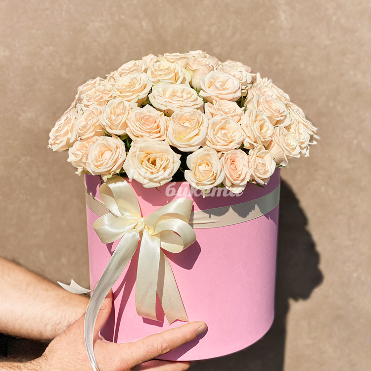41 кремовая роза в коробке