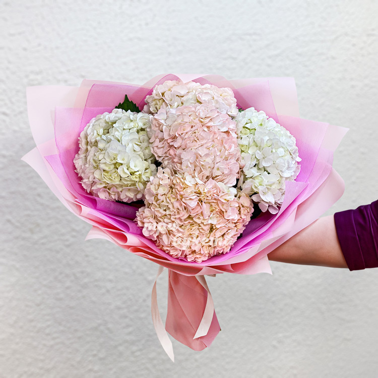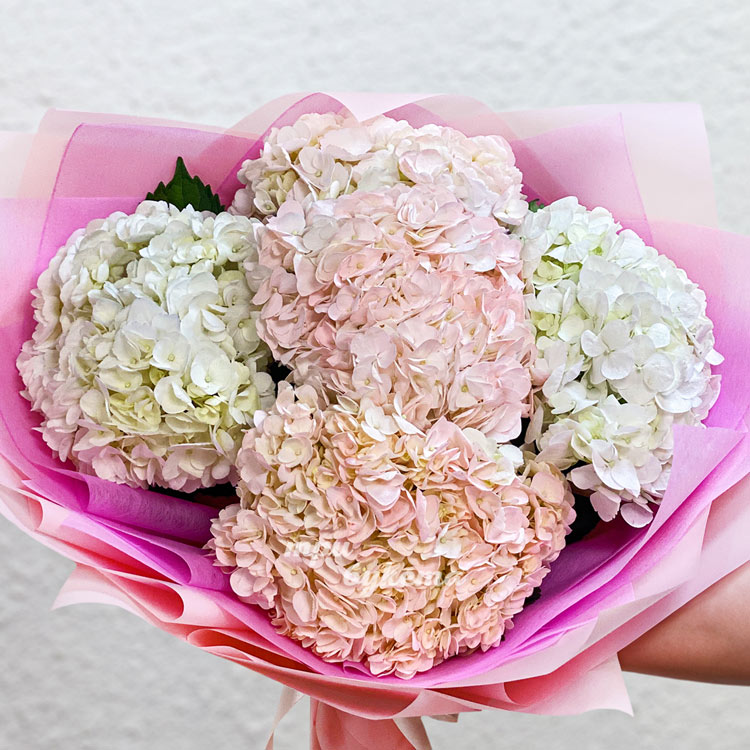7 розовых и белых гортензий