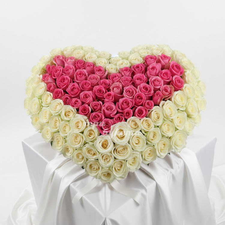 Бело-розовое сердце из 151 розы