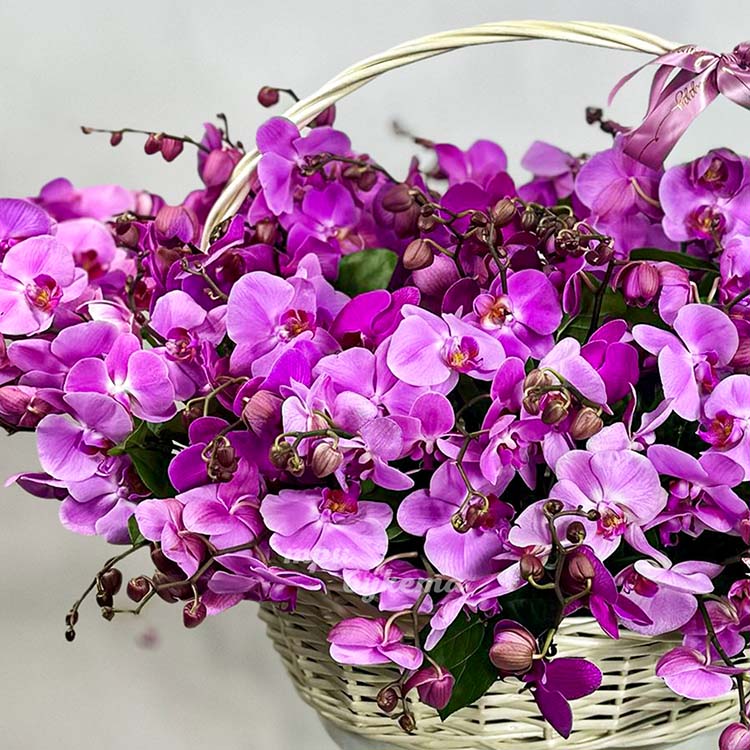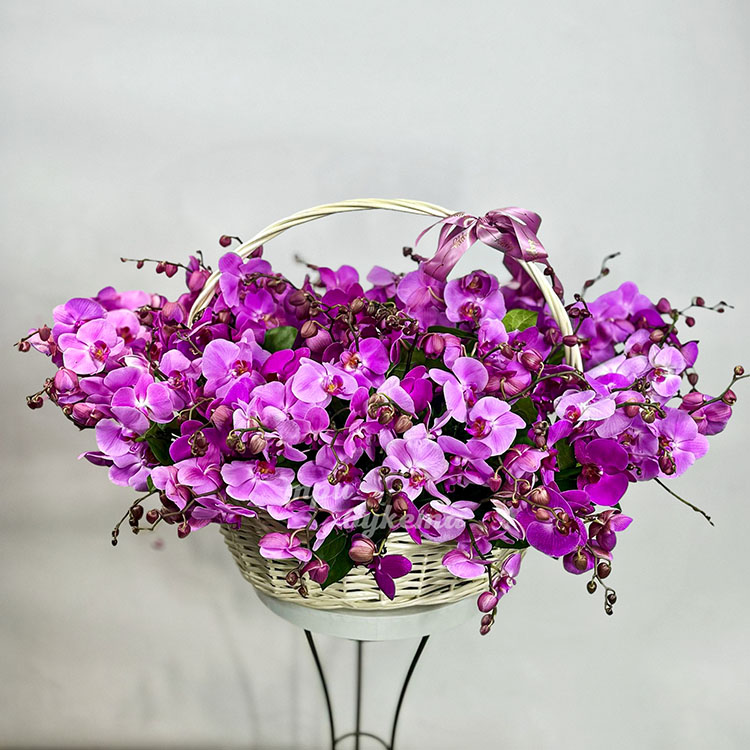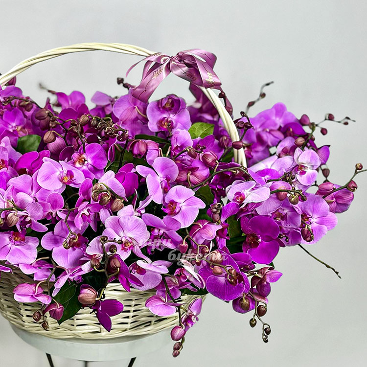 Большая корзина сиреневых орхидей