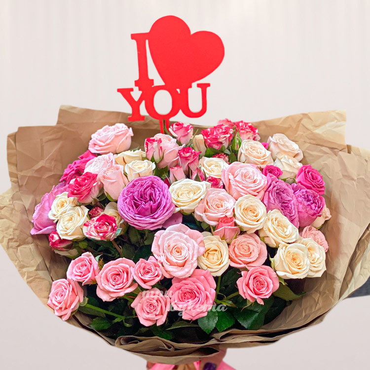 Букет ассорти кустовых роз на 8 марта