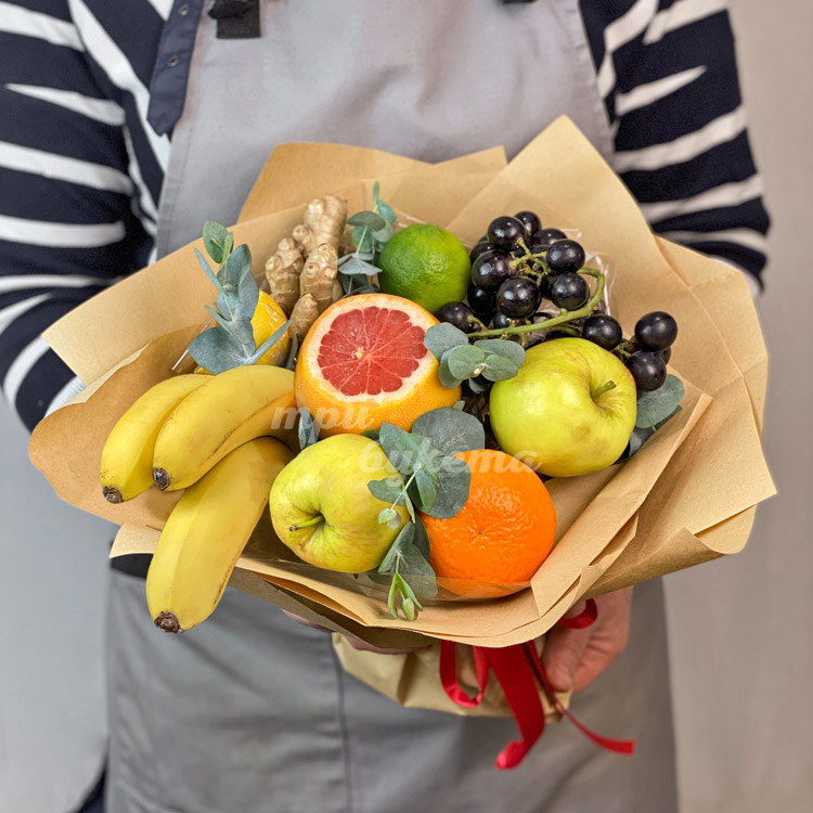 Букет бананов, цитрусовых и яблок