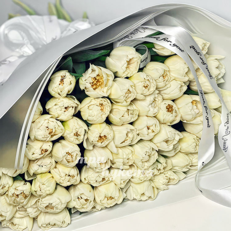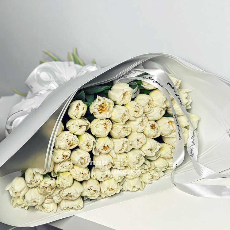 Букет белых пионовидных тюльпанов