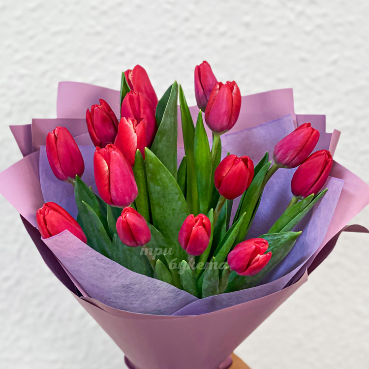 - Красные тюльпаны, 15 шт.