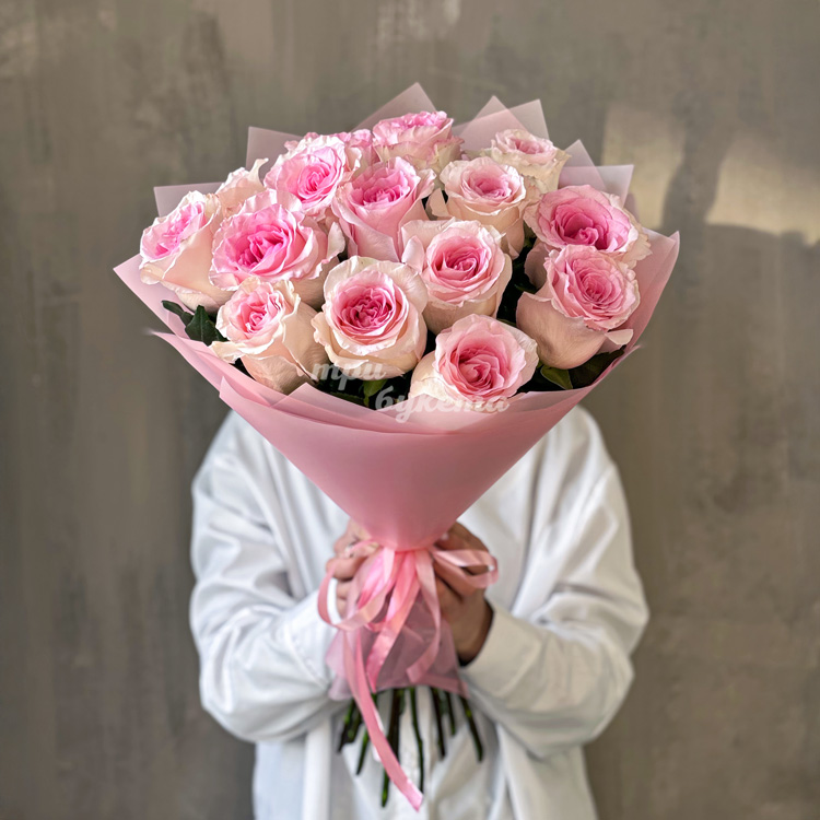 - Розовые пионовидные розы, 15 шт.