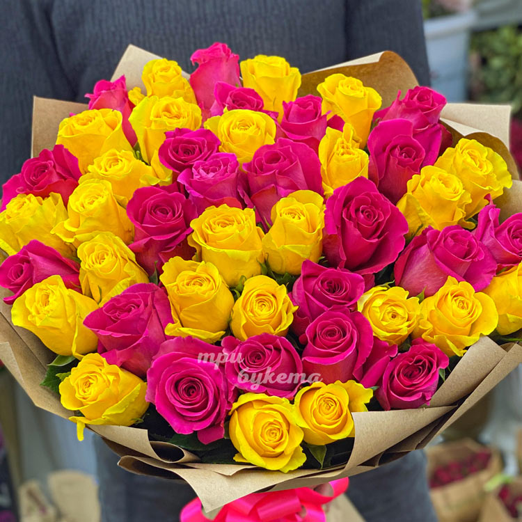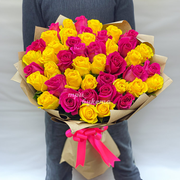 Букет из 45 желтых и розовых роз