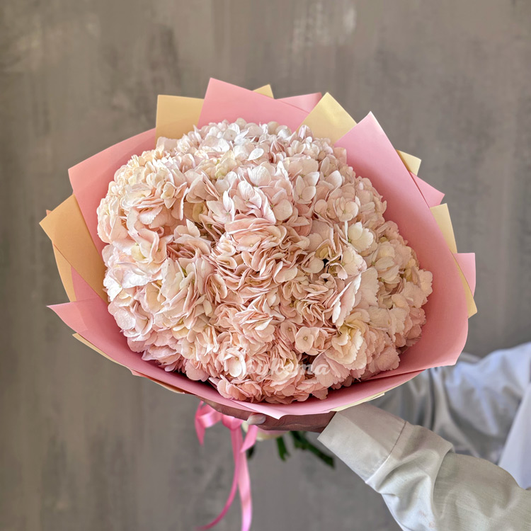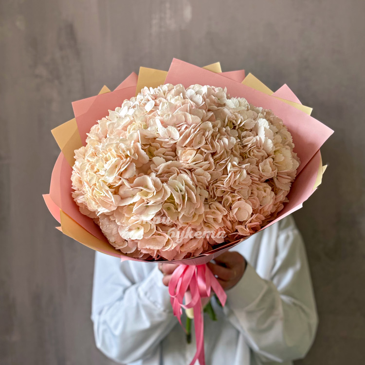 Букет из 7 персиковых гортензий