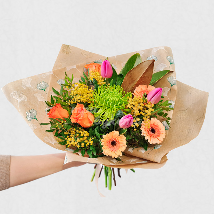 Букет из гербер, роз и тюльпанов