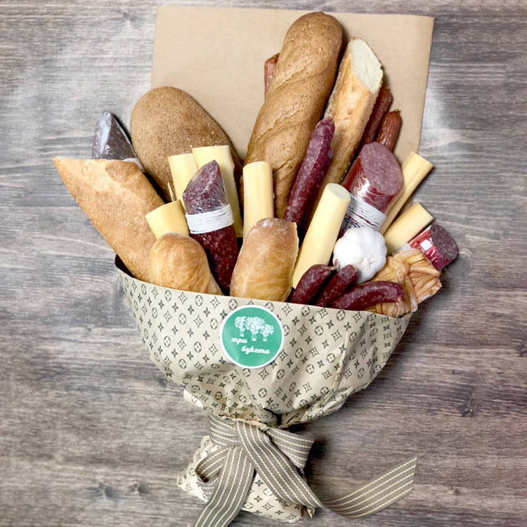 Букет из колбасы, батонов и сыра