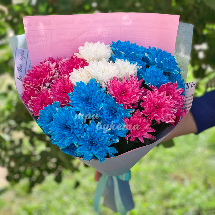 Букет из разноцветных хризантем