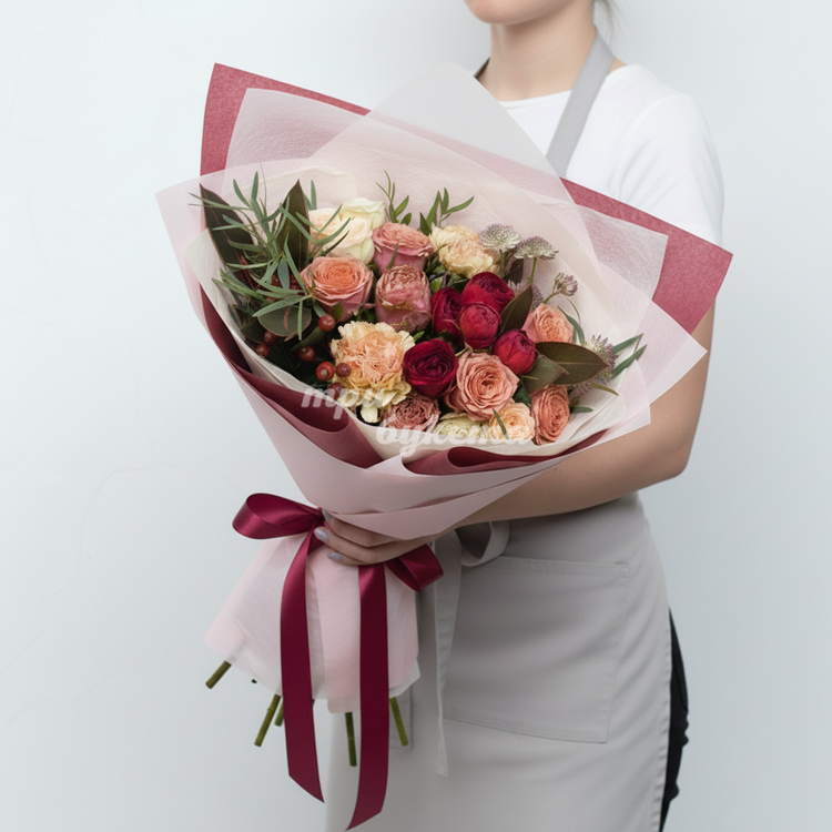 Букет из роз и диантуса