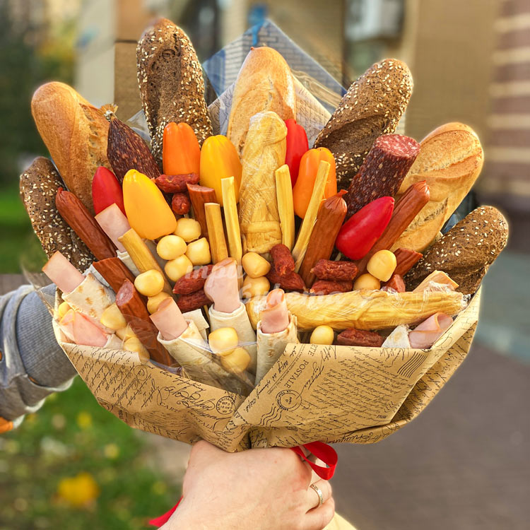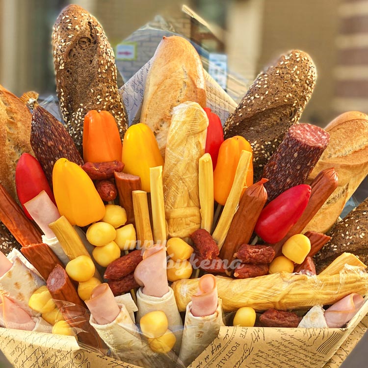 Букет на 23 февраля из багетов и сыра