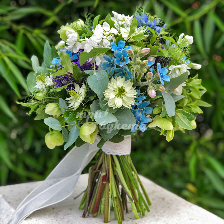 Букет невесты из маттиолы и нигеллы