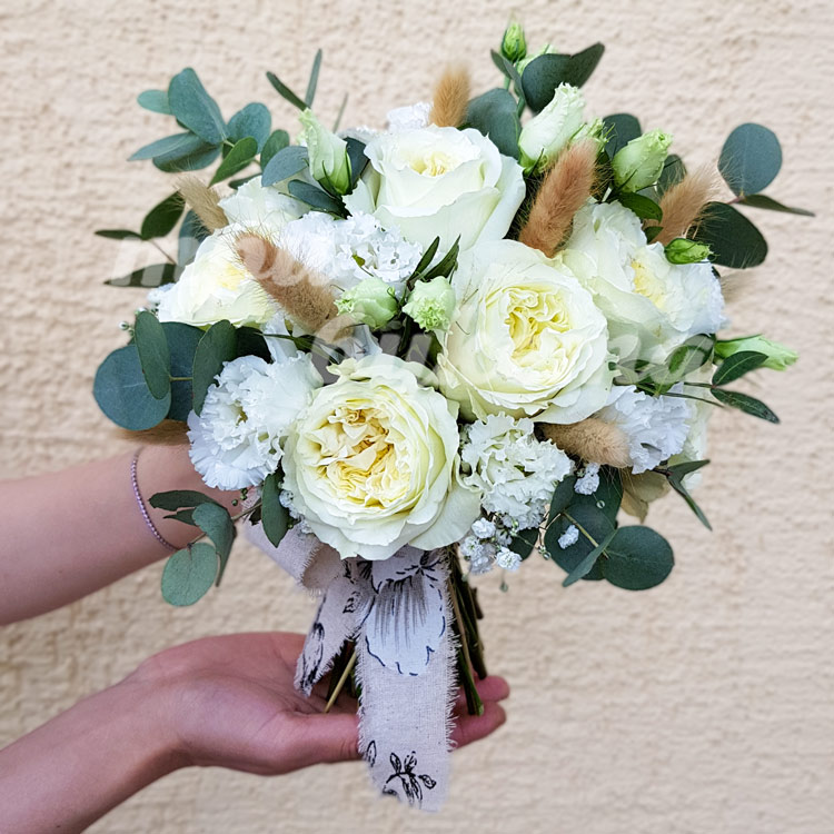 Букет невесты из роз и эвкалипта