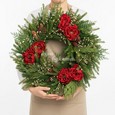 Букет зеленых хризантем и красных роз