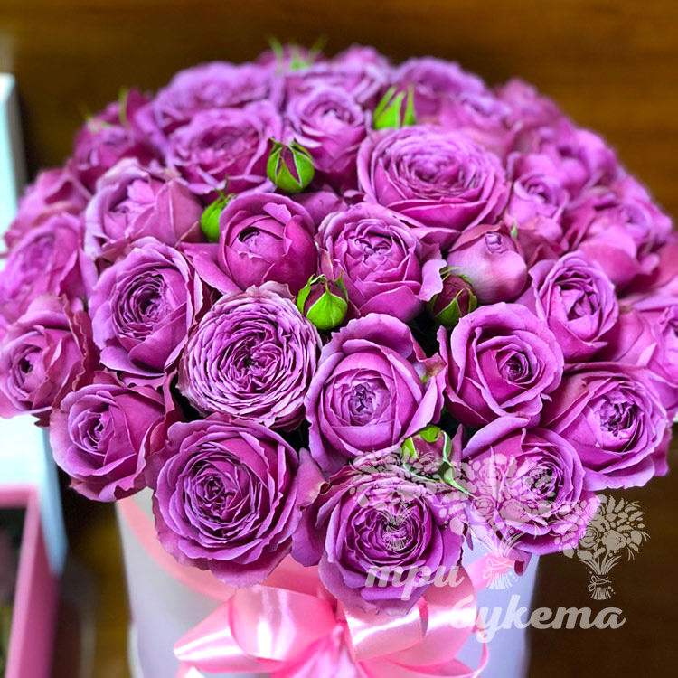 Фиолетовые розы в шляпной коробке