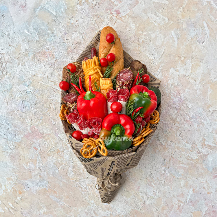 Колбасный букет с овощами и багетами