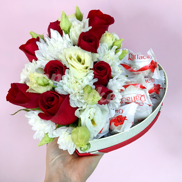 Комп. с Raffaello, розами и фрезией
