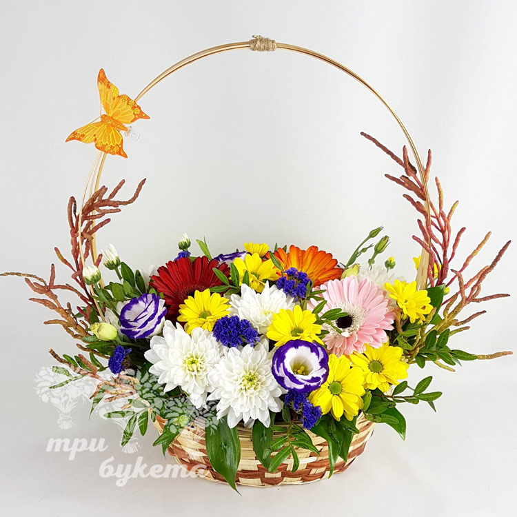 Корзина гербер и хризантем