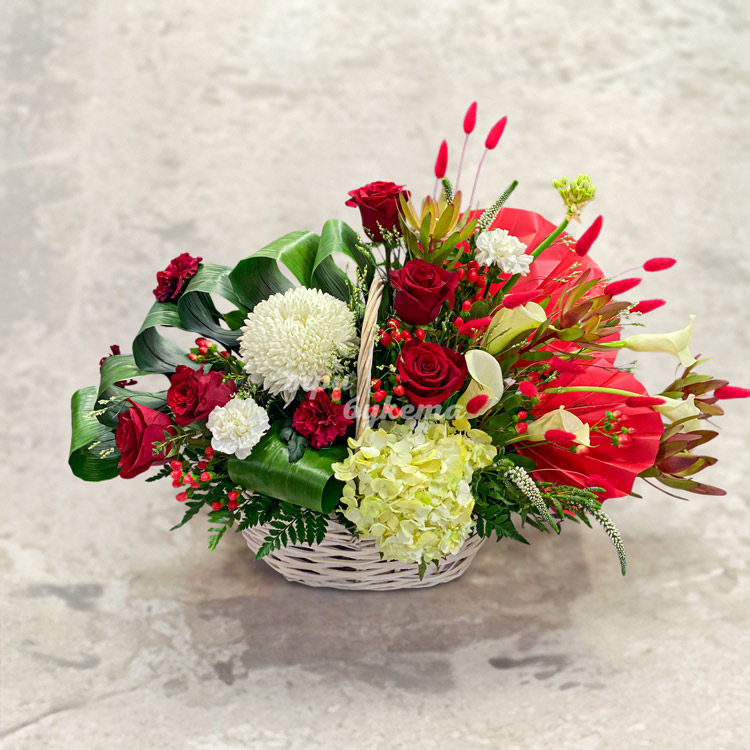 Корзина цветов с дизайнерским оформлением