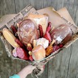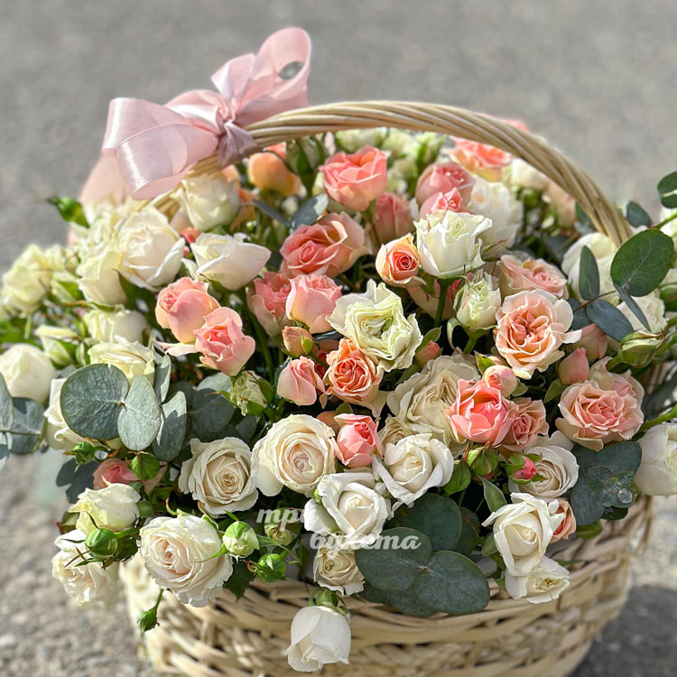 Корзина кустовых роз с эвкалиптом