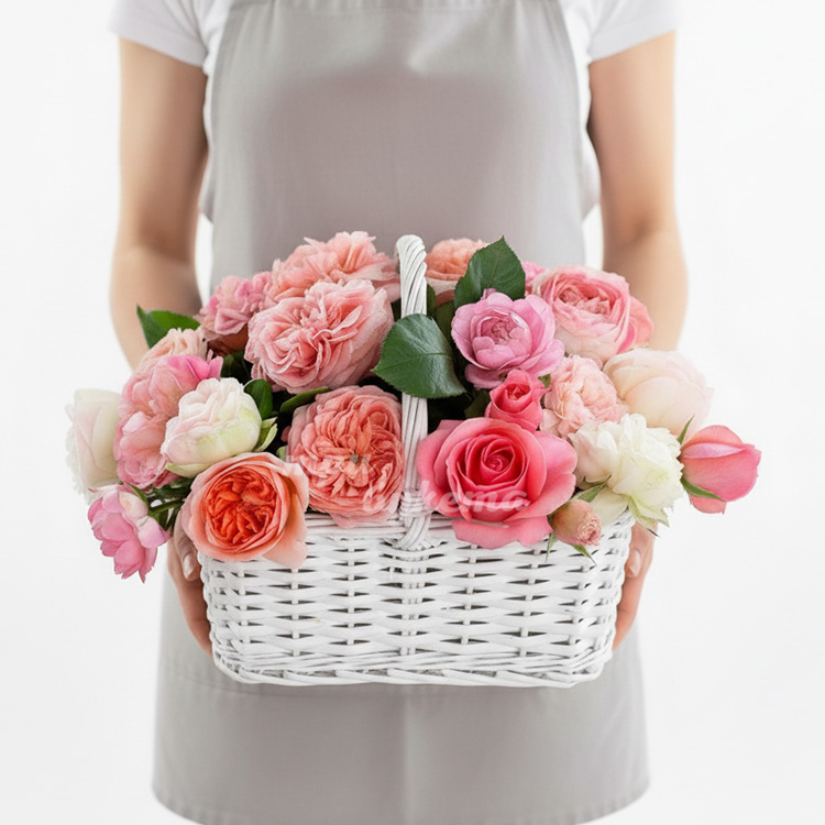 Корзина пионов и роз