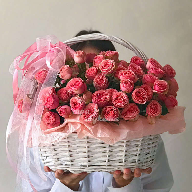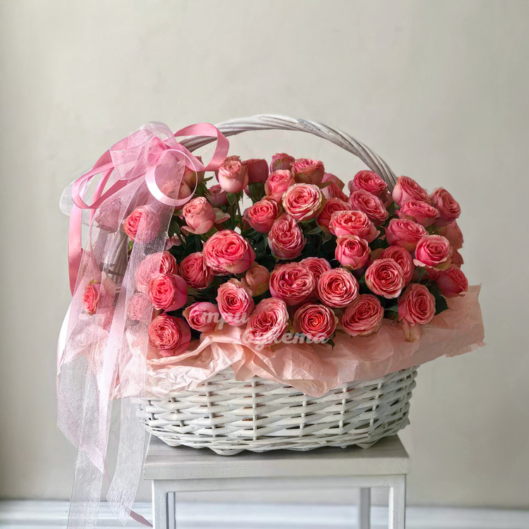 Корзина розовых кустовых пионовидных роз