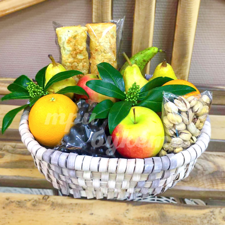Корзина с фруктами и орешками