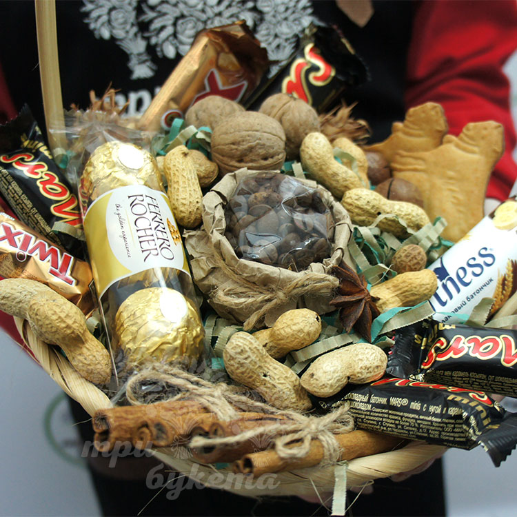 Корзина с кофе и сладостями