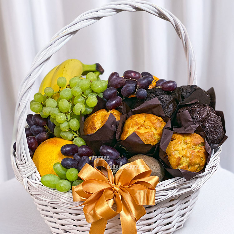 Корзина с виноградом и маффинами