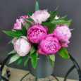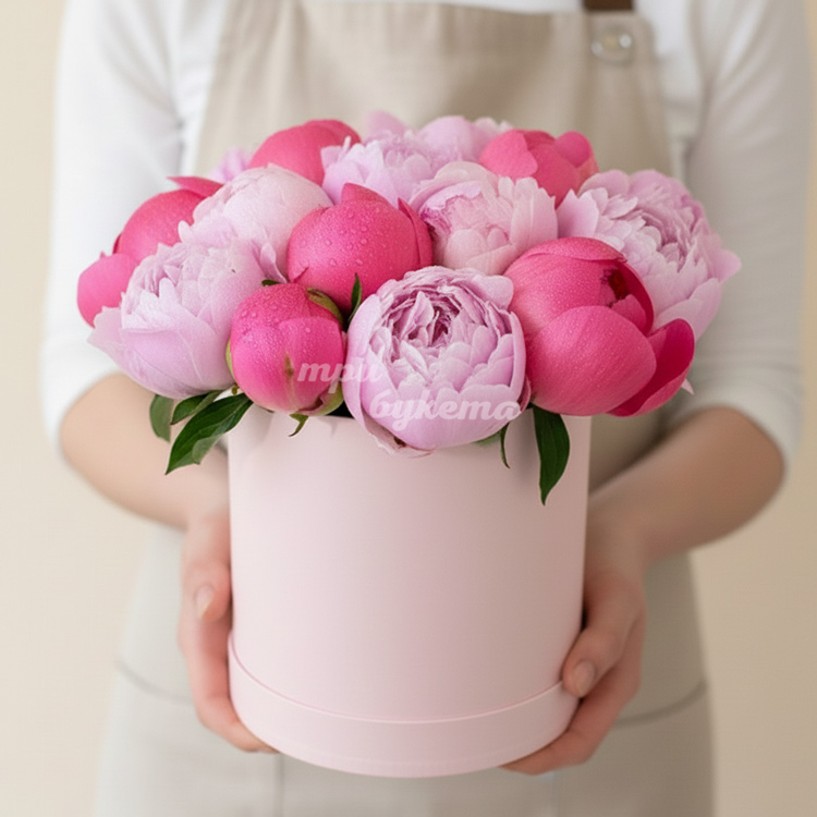 Красные и розовые пионы в коробке