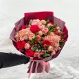 Красный новогодний ящик с хвоей и декором