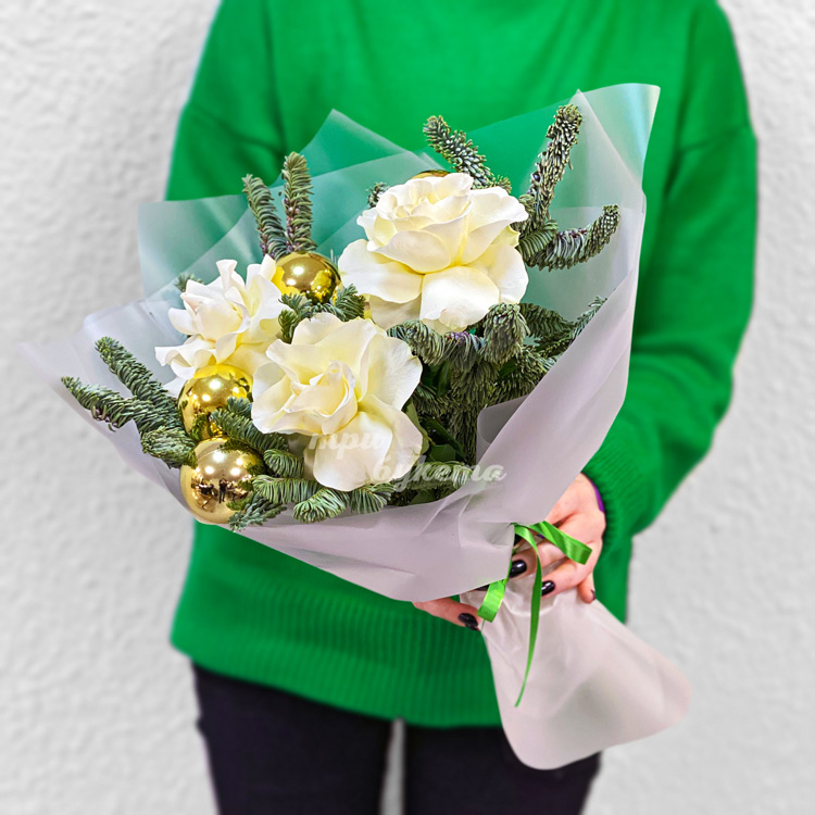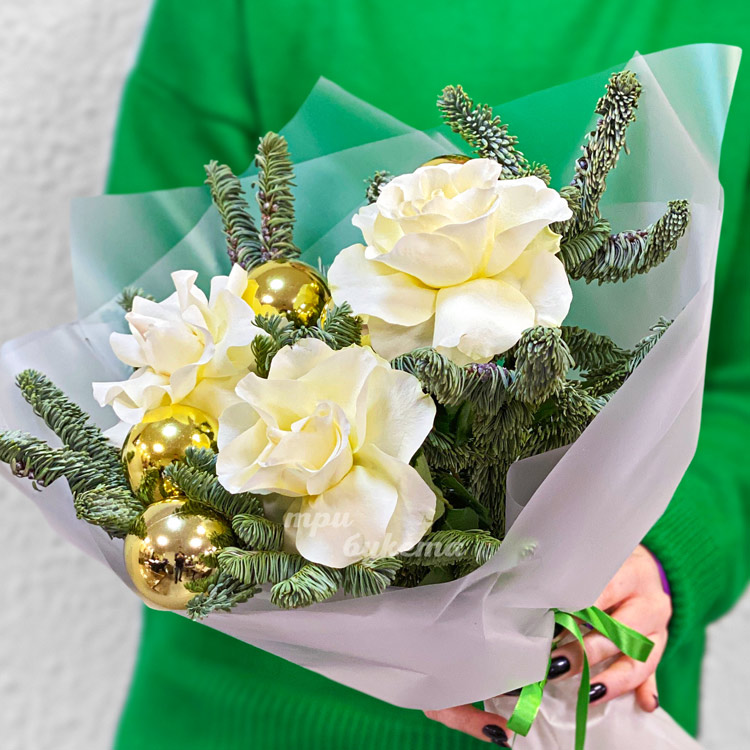Мини-букет из нобилиса и 3 белых роз