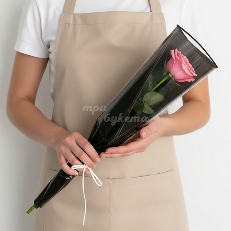 Мини-букет из розовой розы в пленке