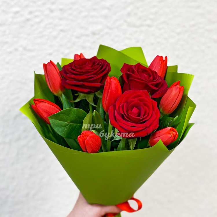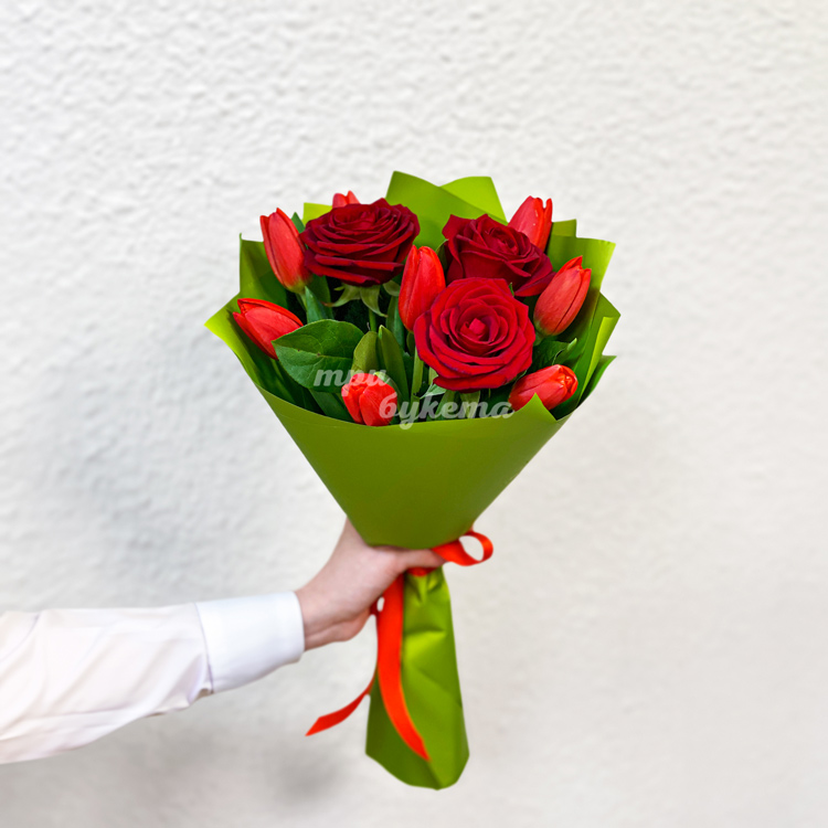 Мини-букет красных тюльпанов и роз