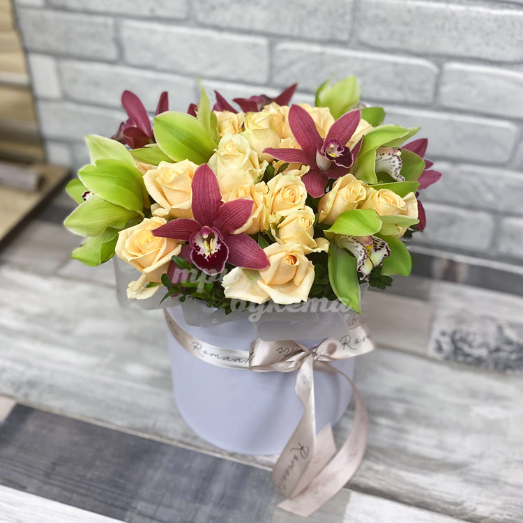 Орхидеи и розы в коробке