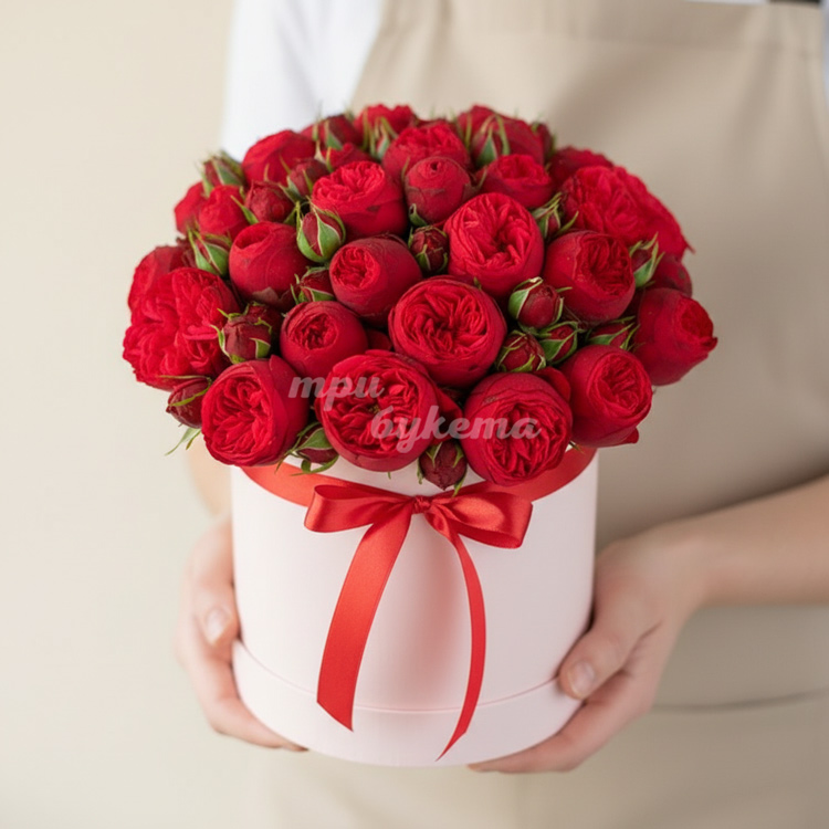 Розы «Red Piano» в шляпной коробке