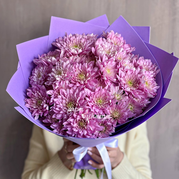 Сиреневый букет из 7 кустовых хризантем