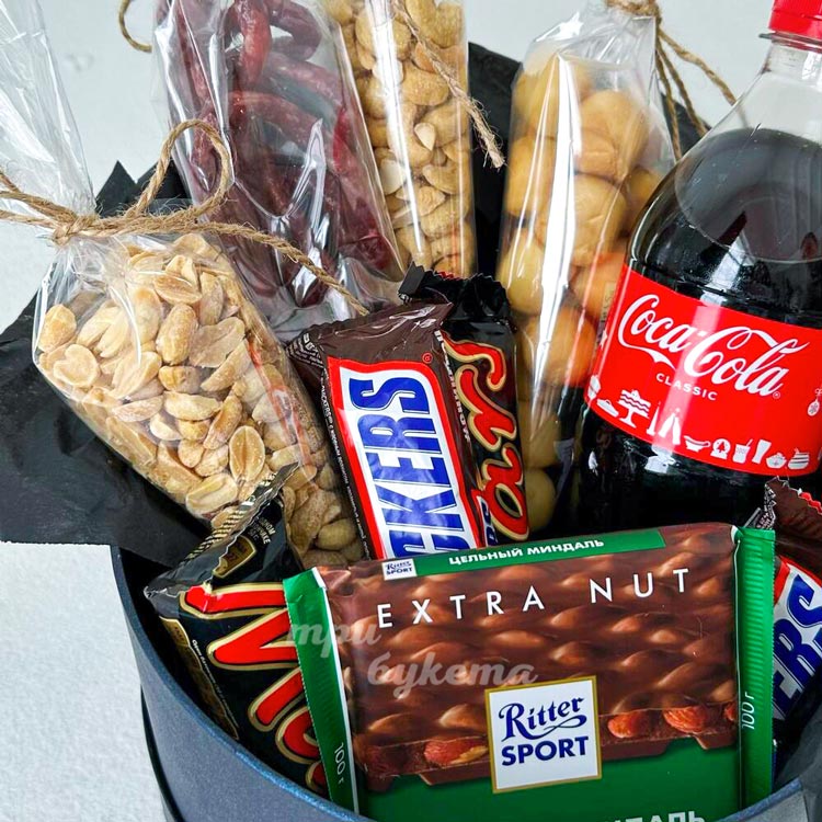 Снеки и сладости в коробке на 23 февраля