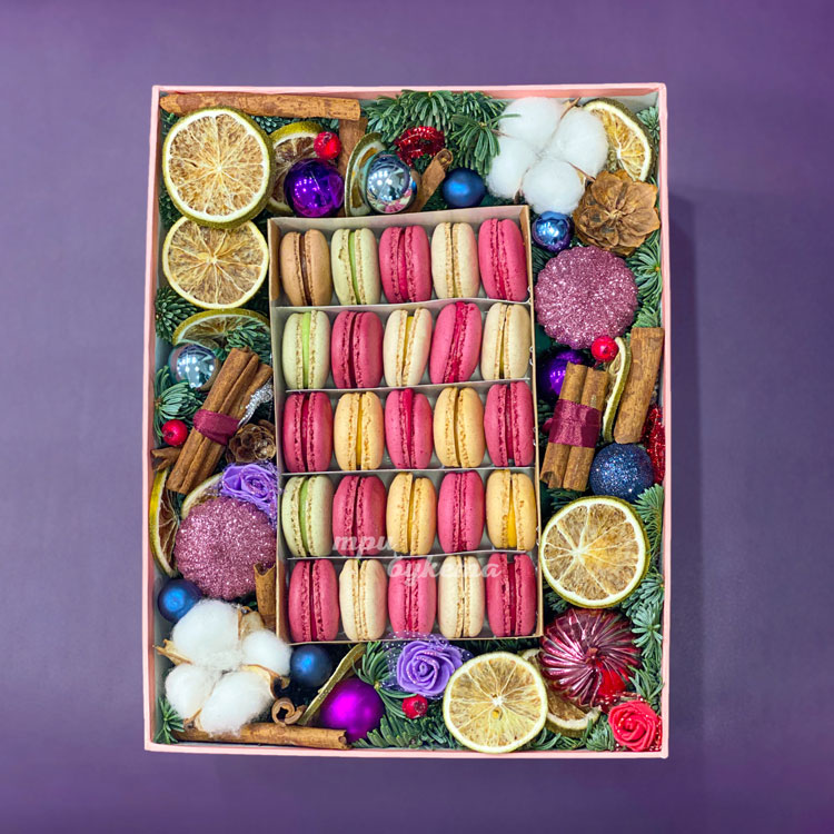 Яркий новогодний подарок с макарунами