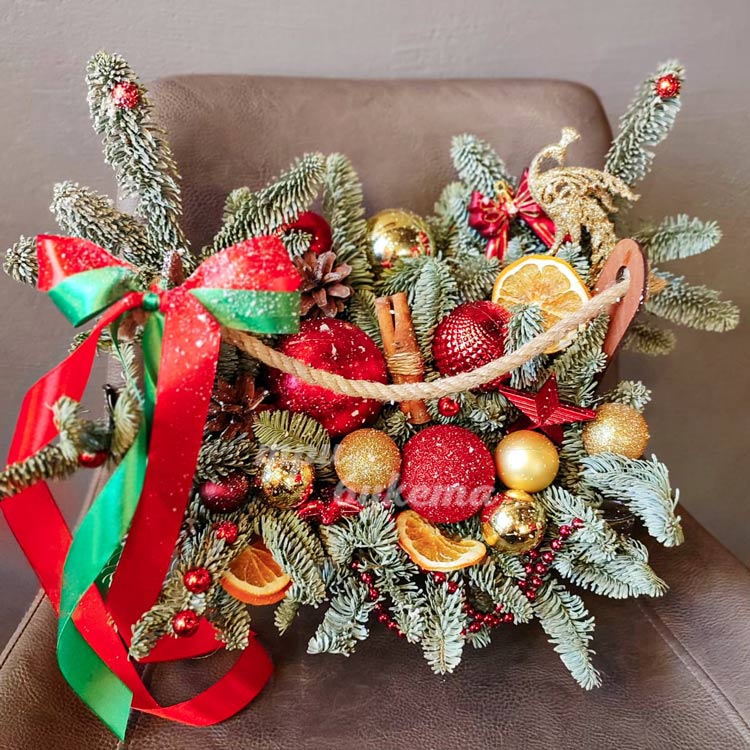 Ящичек хвойных веток и шишек