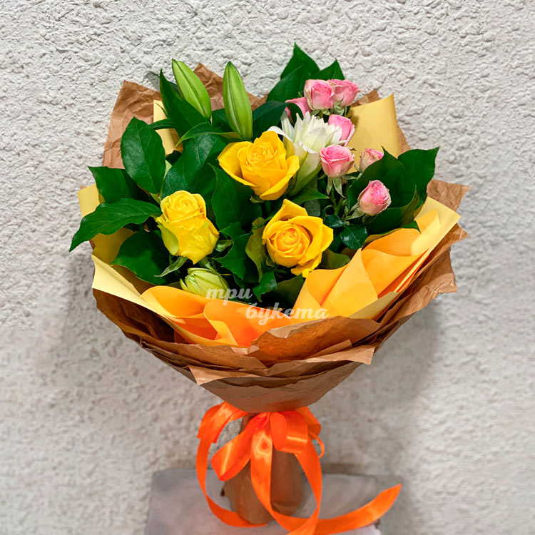Желтый букет из роз и лилий